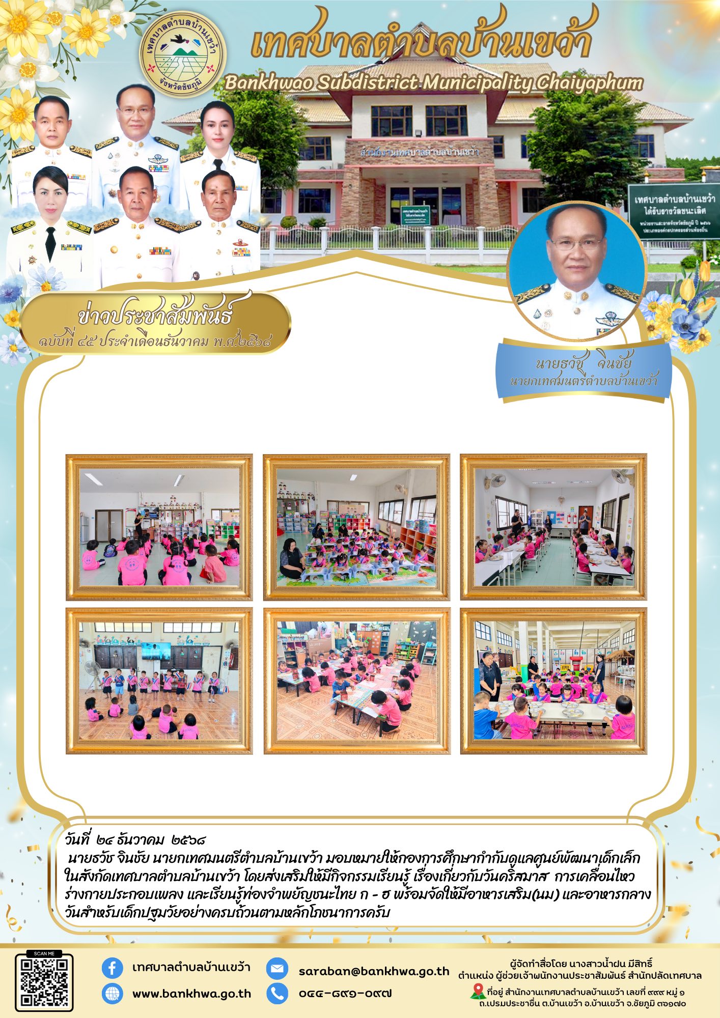 กองการศึกษากำกับดูแลศูนย์พัฒนาเด็กเล็กในสังกัดเทศบาลตำบลบ้านเขว้า...