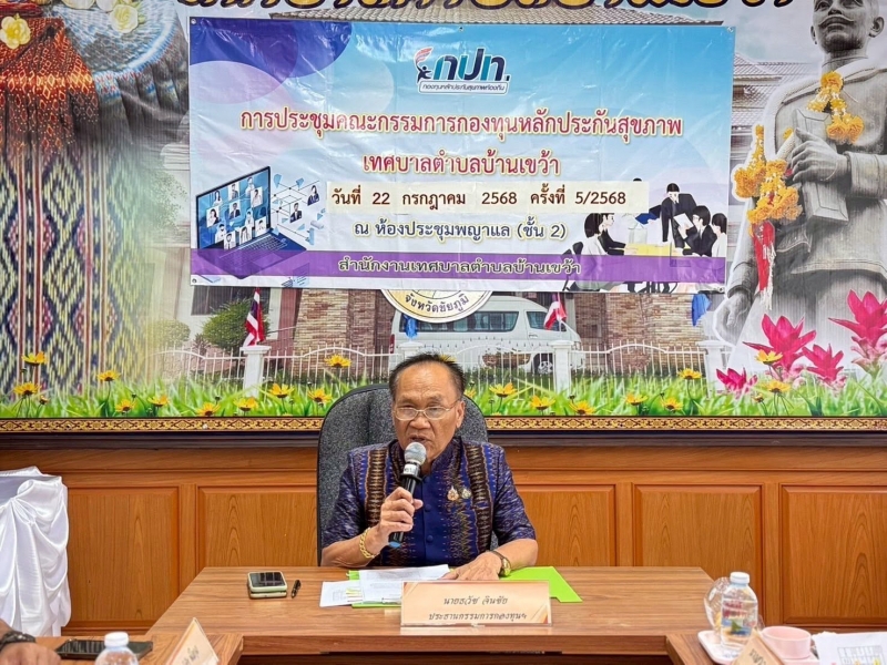นายธวัช จินชัย นายกเทศมนตรีตำบลบ้านเขว้า(ประธานคณะกรรมการบริหารกองทุนหลักประกันสุขภาพเทศบาลตำบลบ้านเขว้า) เป็นประธานการประชุมคณะกรรมการกองทุนฯ ครั้งที่ ๕/๒๕๖๘ พิจารณาการใช้จ่ายเงินตามไตรมาสที่ ๓/๒๕๖๘ และอนุมัติโครงการตามที่หน่วยงานขอรับสนับสนุนงบประมาณ พร้อมอนุมัติปรับแผนการเงินประจำปีงบประมาณ ๒๕๖๘ ณ ห้องประชุมพญาแล (ชั้น ๒) สำนักงานเทศบาลตำบลบ้านเขว้า อ.บ้านเขว้า จ.ชัยภูมิ