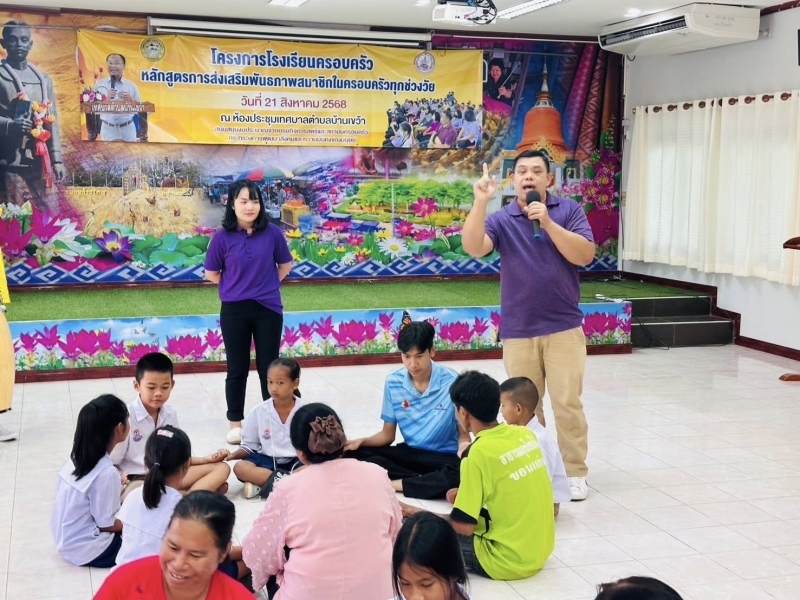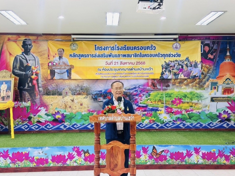 นาย ธวัช จินชัย นายกเทศมนตรีตำบลบ้านเขว้า เป็นประธานพิธีเปิดอบรมโครงการโรงเรียนครอบครัวหลักสูตร การส่งเสริมสัมพันธภาพสมาชิกในครอบครัวทุกช่วงวัย ศูนย์พัฒนาครอบครัวในชุมชนเทศบาลตำบลบ้านเขว้า ประจำปี ๒๕๖๘ พร้อมด้วยคณะผู้บริหาร ปลัดเทศบาลฯ สมาชิกสภาฯ ผอ.กองฯ เจ้าหน้าที่กองสวัสดิการสังคม ร่วมพิธีเปิดโครงการฯ และได้รับความอนุเคราะห์วิทยากรจากเทศบาลตำบลบ้านค่ายหมื่นแผ้ว