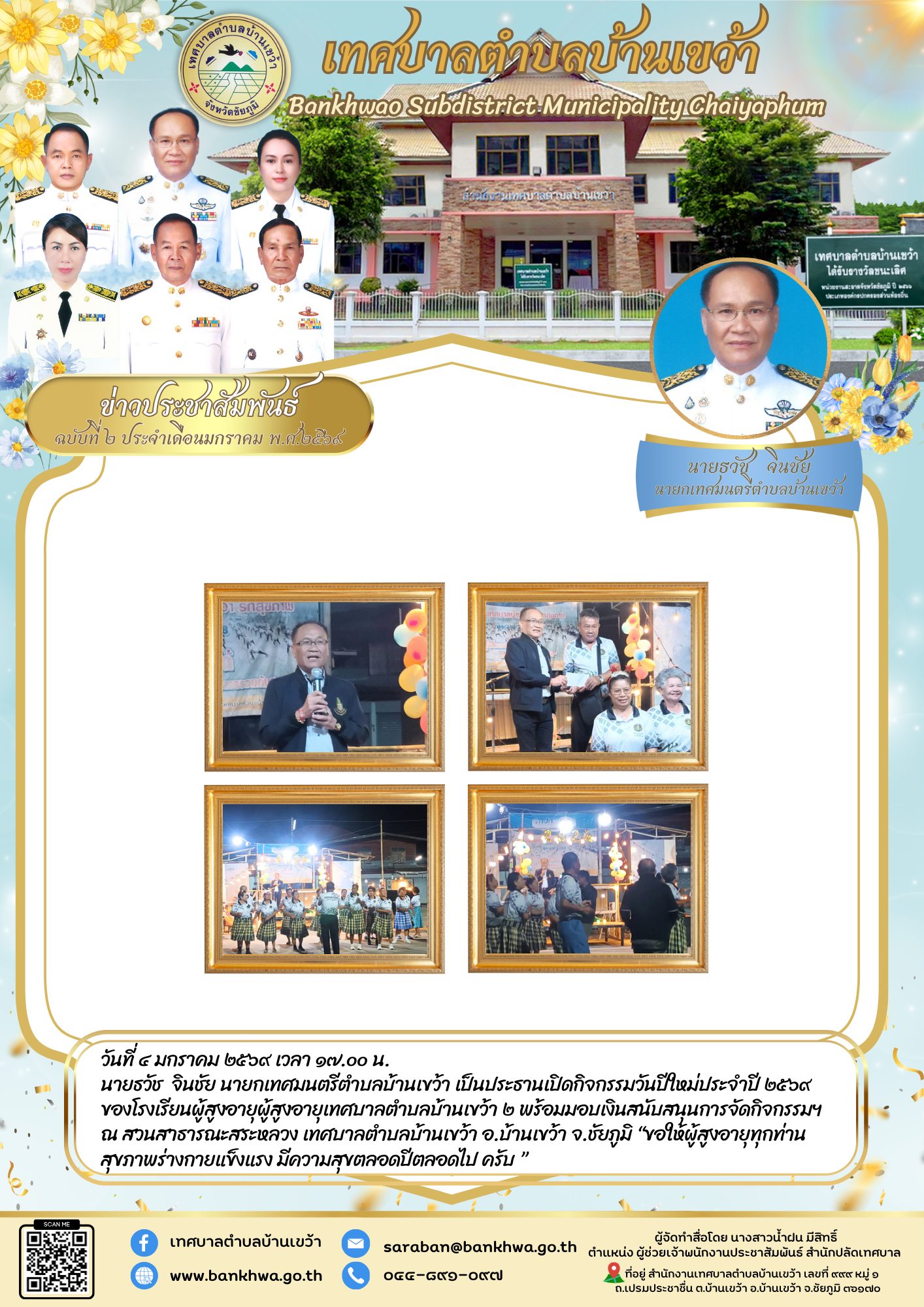 นายธวัช จินชัย นายกเทศมนตรีตำบลบ้านเขว้า เป็นประธานเปิดกิจกรรมวันปีใหม่ประจำปี ๒๕๖๙ ของโรงเรียนผู้สูงอายุผู้สูงอายุเทศบาลตำบลบ้านเขว้า ๒ พร้อมมอบเงินสนับสนุนการจัดกิจกรรมฯ