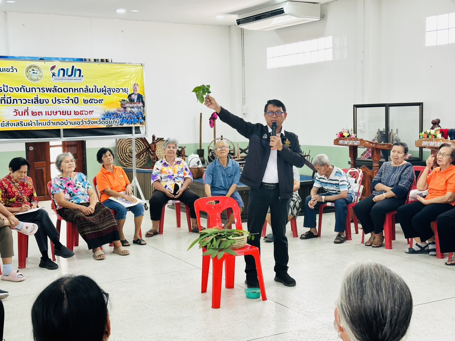 วันที่ 23 เมษายน 2569 เวลา 09.00 น. นายธวัช จินชัย นายกเทศมนตรีเทศบาลตำบลบ้านเขว้า เป็นประธานพิธีเปิดอบรมโครงการป้องกันการพลัดตกหกล้มในผู้สูงอายุที่มีภาวะเสี่ยงประจำปี 2569 พร้อมด้วยคณะผู้บริหาร สมาชิกสภาเทศบาล ปลัดเทศบาลตำบลบ้านเขว้า เจ้าหน้าที่กองสวัสดิการสังคม ร่วมพิธีเปิดอบรมโครงการป้องกันการพลัดตกหกล้มในผู้สูงอายุที่มีภาวะเสี่ยง ประจำปี 2569 ประกอบด้วยกิจกรรมจัดอบรมเรื่อง การฝึกเพื่อเพิ่มสมรรถภาพทางกาย และป้องกันการหกล้มสำหรับผู้สูงอายุ โดยวิทยากรให้ความรู้จาก นายนิคม บุญกอบ ผู้อำนวยการโรงพยาบาลส่งเสริมสุขภาพตำบลบ้านแก้งยาว ณ ศูนย์ส่งเสริมผ้าไหม โดยมีกลุ่มเป้าหมายเป็นผู้สูงอายุในเขตเทศบาลตำบลบ้านเขว้า จำนวน 73 คน โดยได้รับการสนับสนุนงบประมาณจากกองทุนหลักประกันสุขภาพเทศบาลตำบลบ้านเขว้า