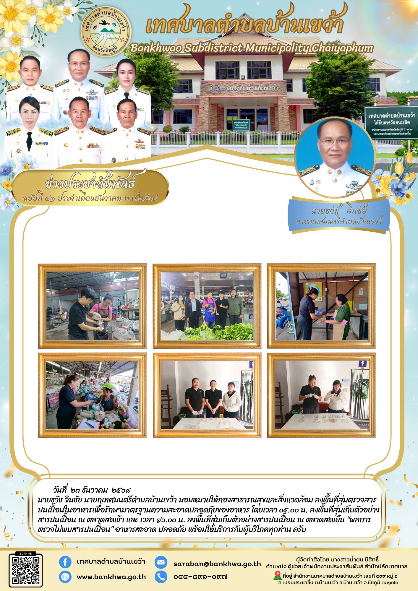 กองสาธารณสุขและสิ่งแวดล้อม ลงพื้นที่สุ่มตรวจสารปนเปื้อนในอาหารเพื่อรักษามาตรฐานความสะอาดปลอดภัยของอา�...