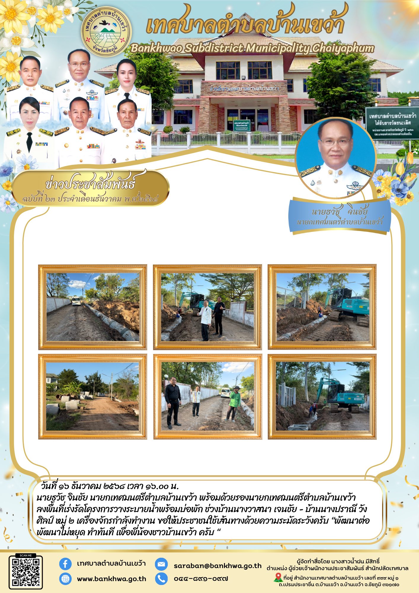 นายกเทศมนตรีตำบลบ้านเขว้า พร้อมด้วยรองนายกเทศมนตรีตำบลบ้านเขว้า ลงพื้นที่เร่งรัดโครงการวางระบายน้ำพร้�...