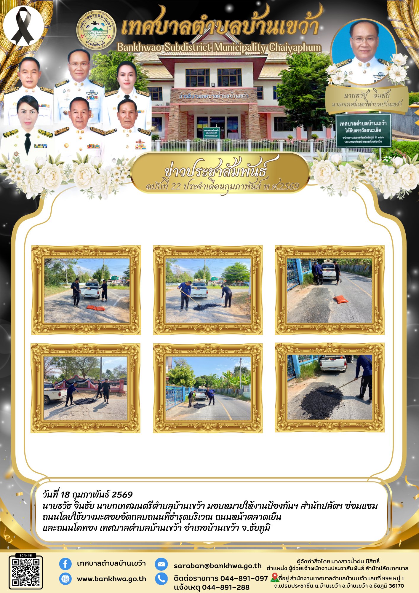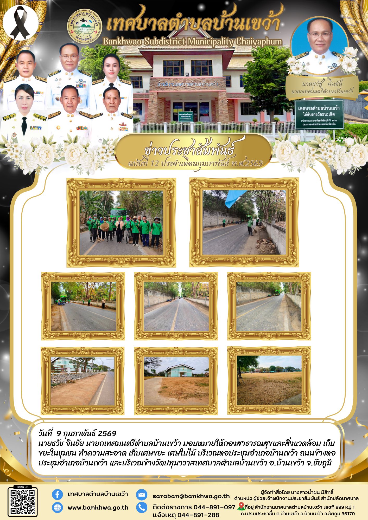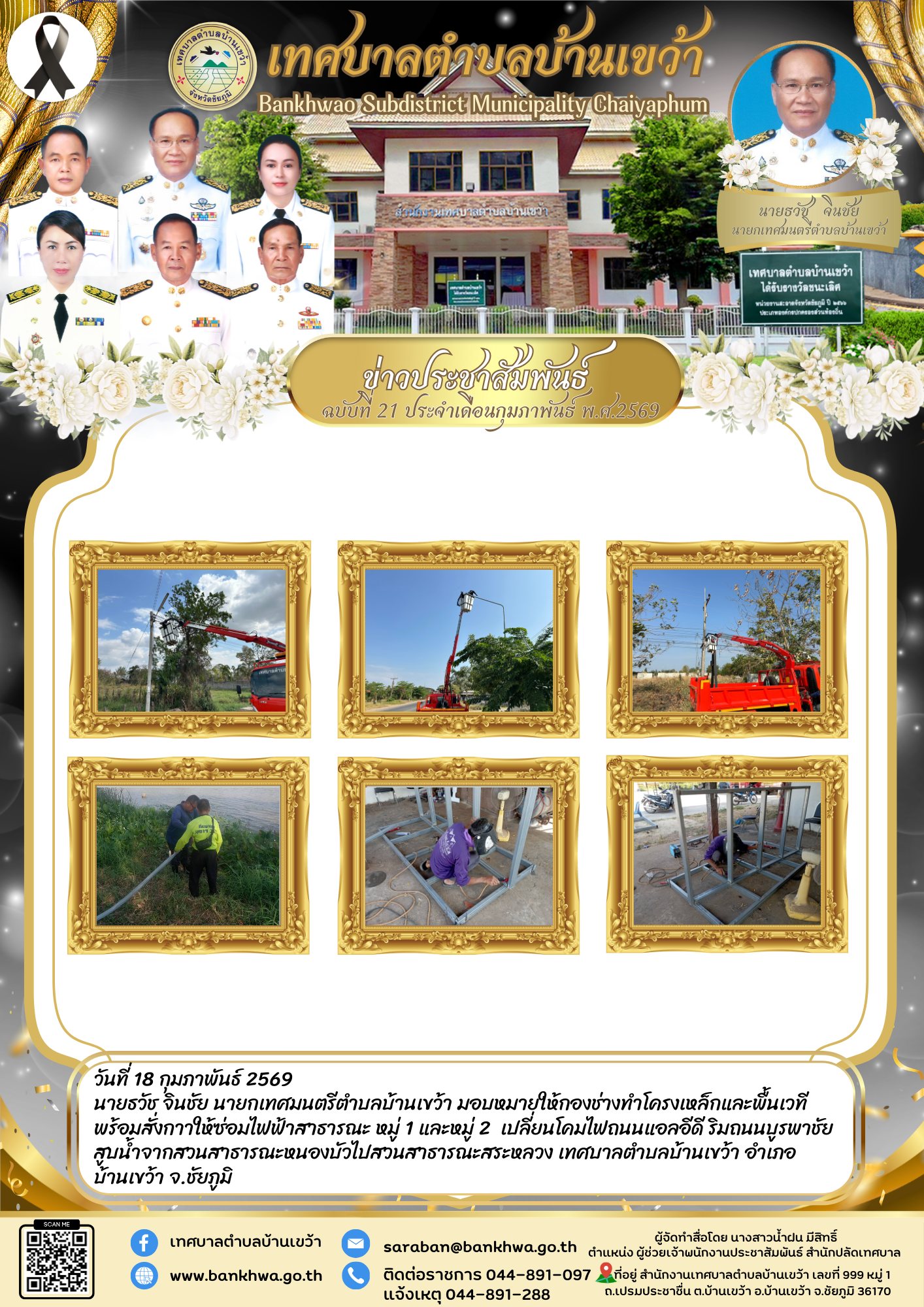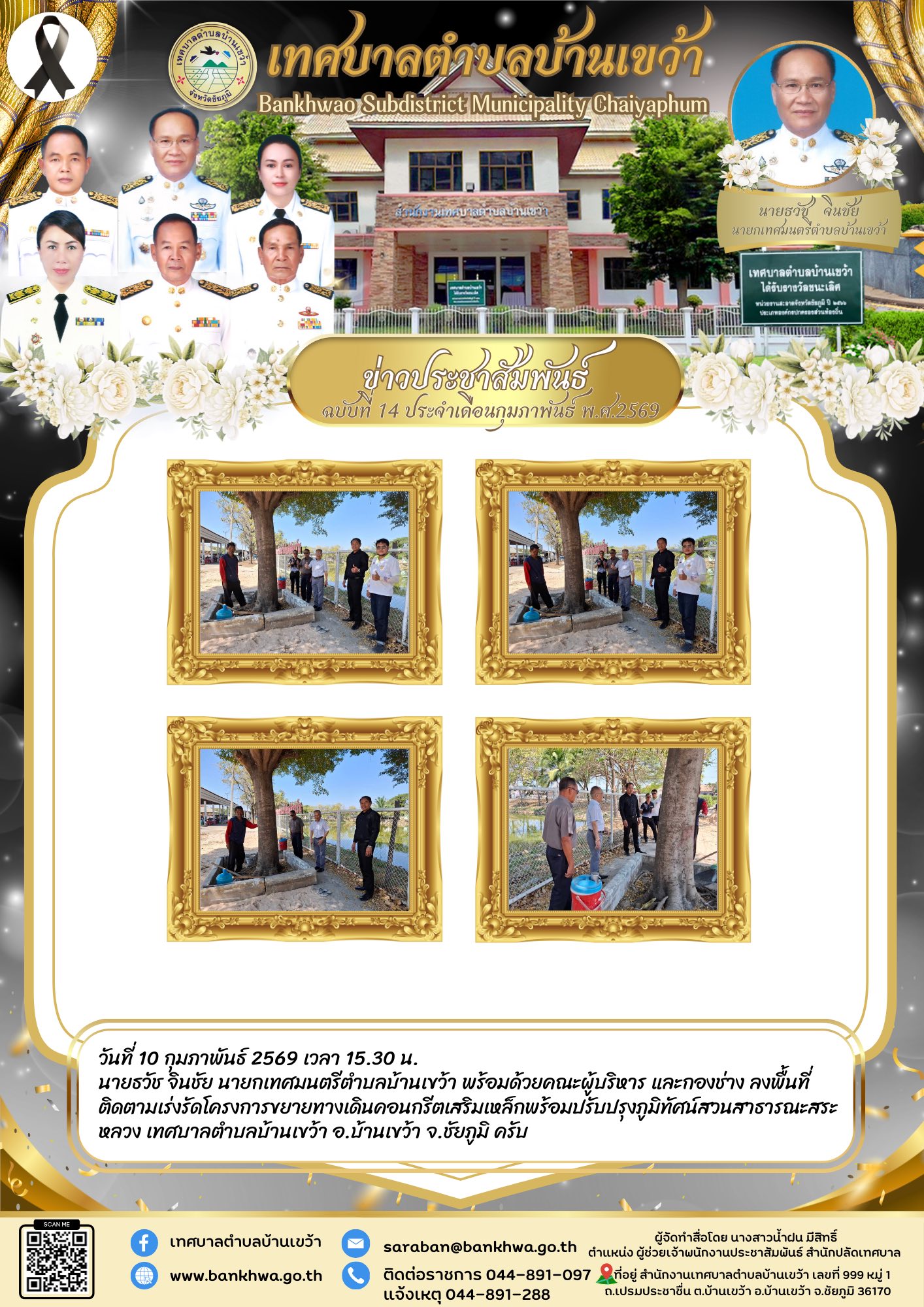 วันที่ 10 กุมภาพันธ์ 2569 เวลา 15.00 น. นายธวัช จินชัย นายกเทศมนตรีตำบลบ้านเขว้า ลงพื้นที่ตรวจสอบความเสียหายของป้า�...