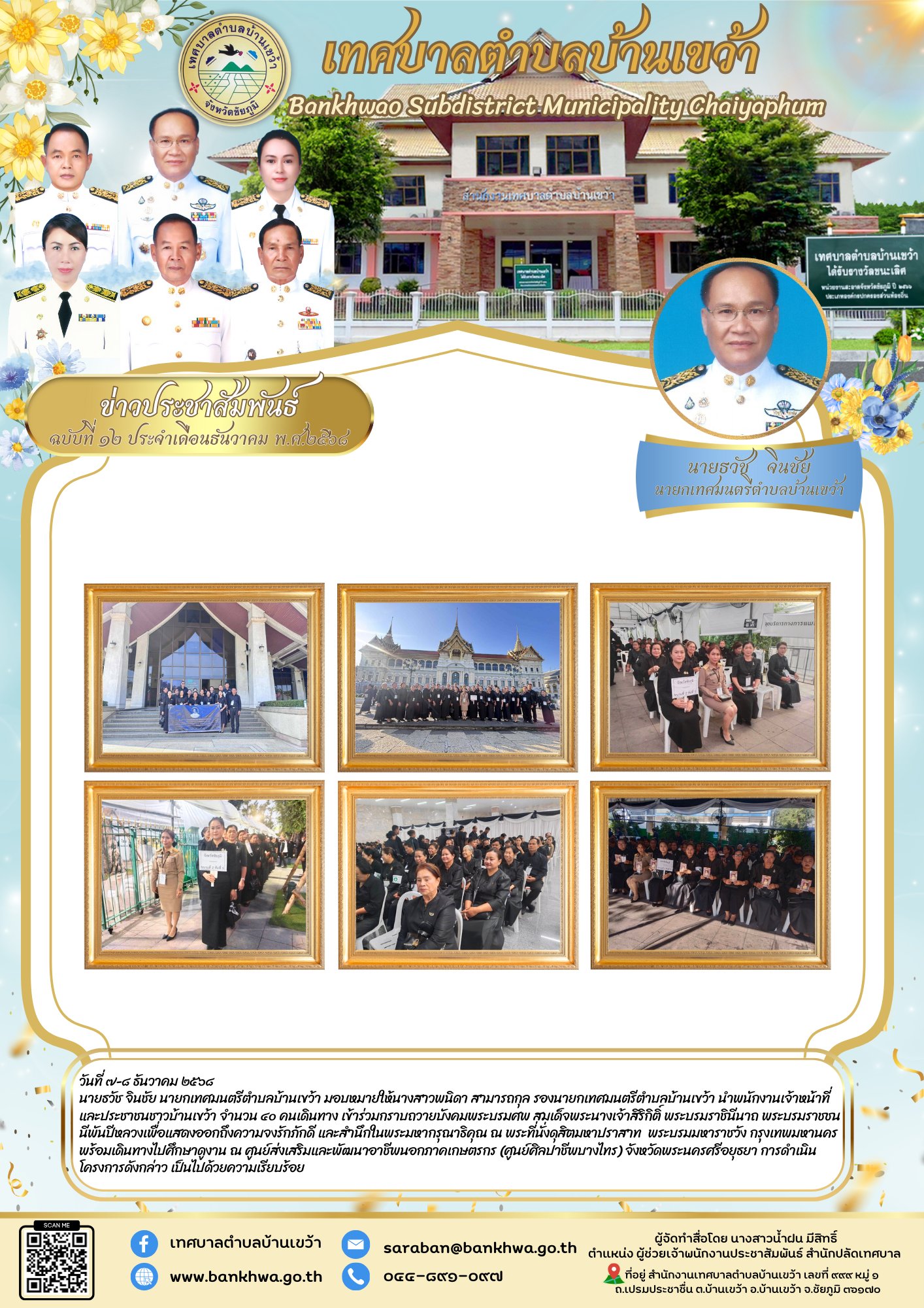 เทศบาลตำบลบ้านเขว้า ร่วมพิธีบำเพ็ญกุศลทักษิณานุประทานอุทิศถวายพระราชกุศล ในวาระครบ ๕๐ วัน (ปัญญาสมวาร)...