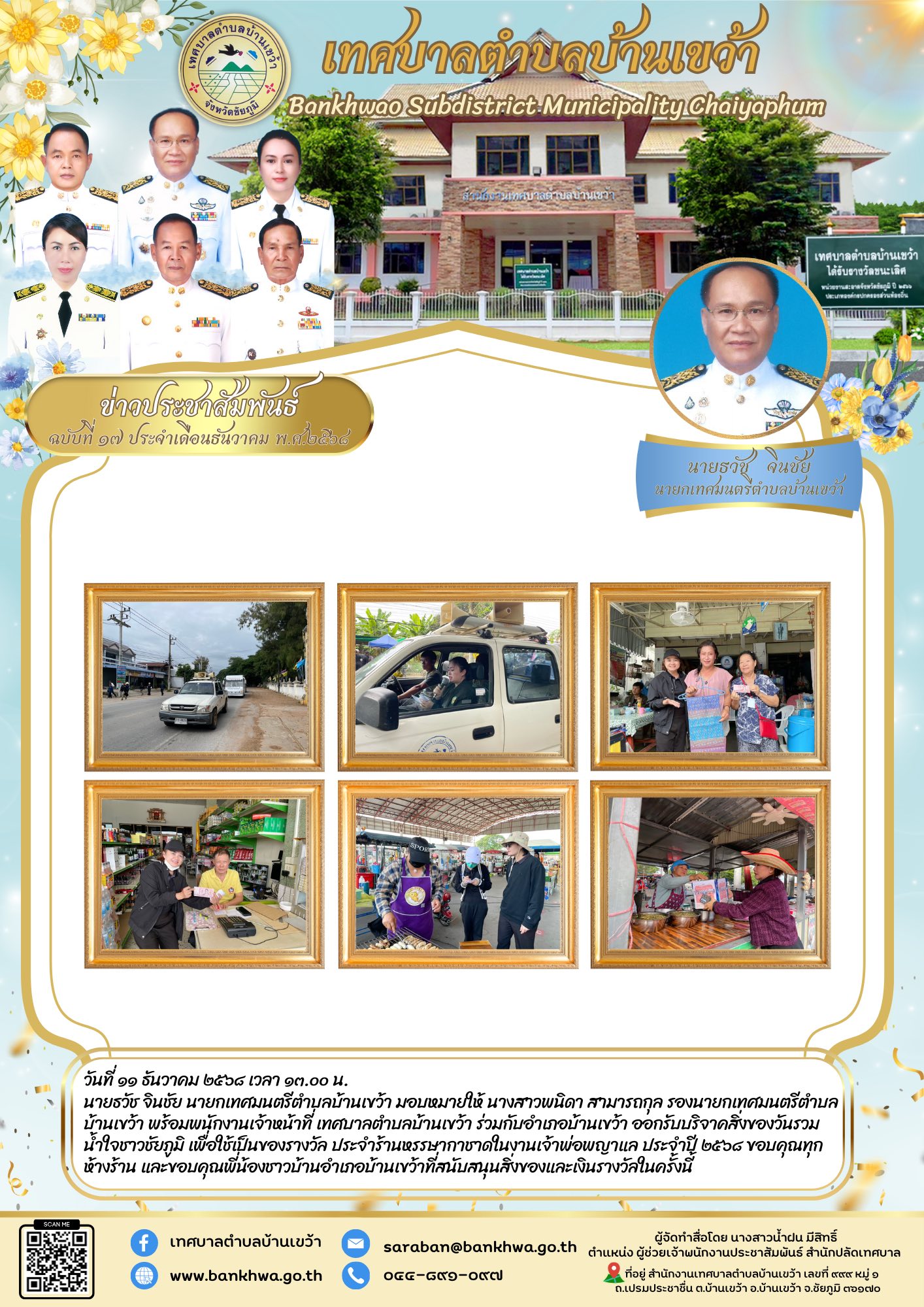 เทศบาลตําบลบ้านเขว้า ร่วมกับอำเภอบ้านเขว้า ออกรับบริจาคสิ่งของวันรวมน้ำใจชาวชัยภูมิ...