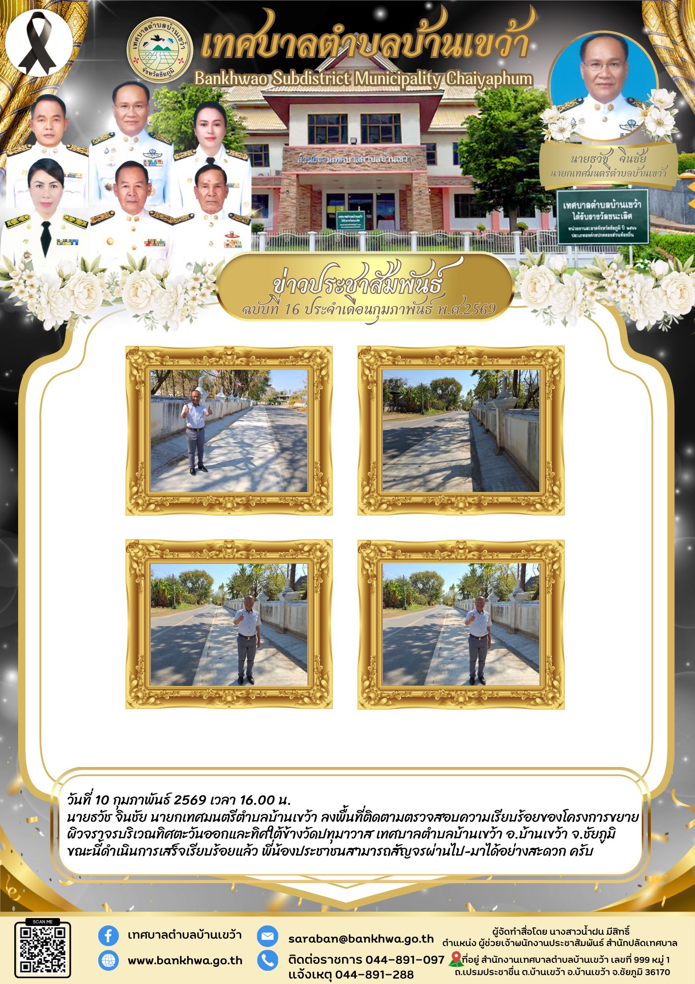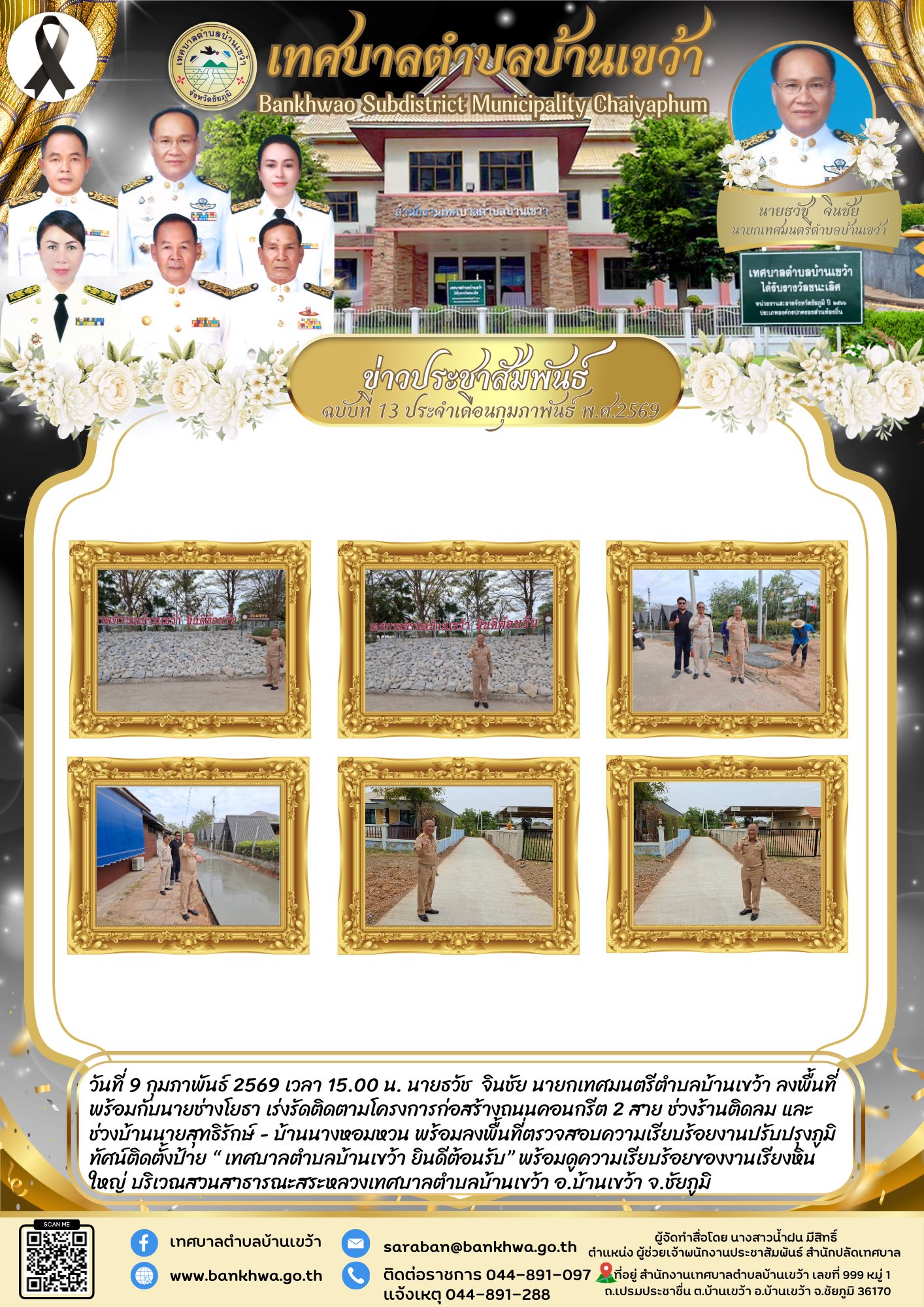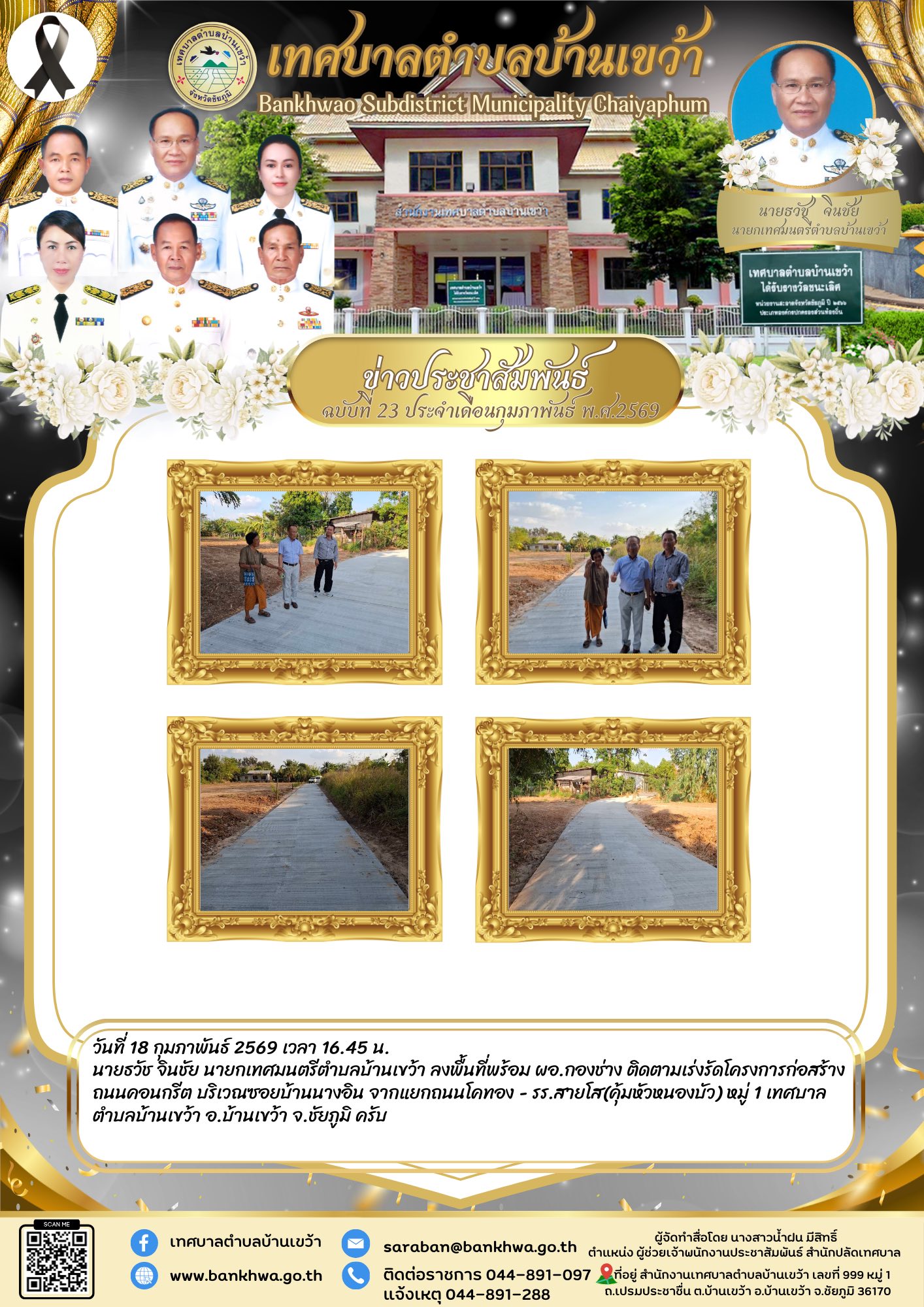 นายกเทศมนตรีตำบลบ้านเขว้า ติดตามเร่งรัดโครงการก่อสร้างถนนคอนกรีต ...