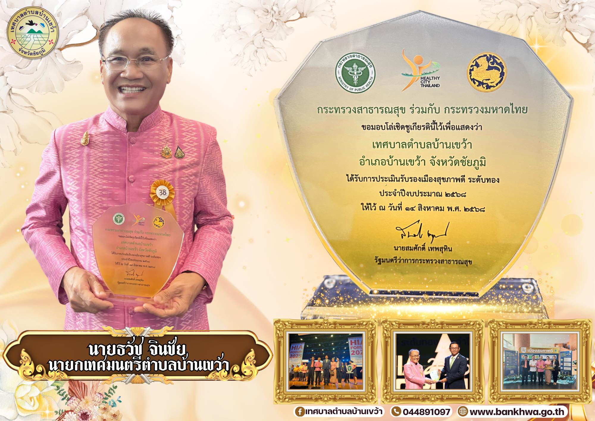 มอบโล่เชิดชูเกียรติรับรองเมืองสุขภาพดี ระดับทอง ประจำปีงบประมาณ ๒๕๖๘...