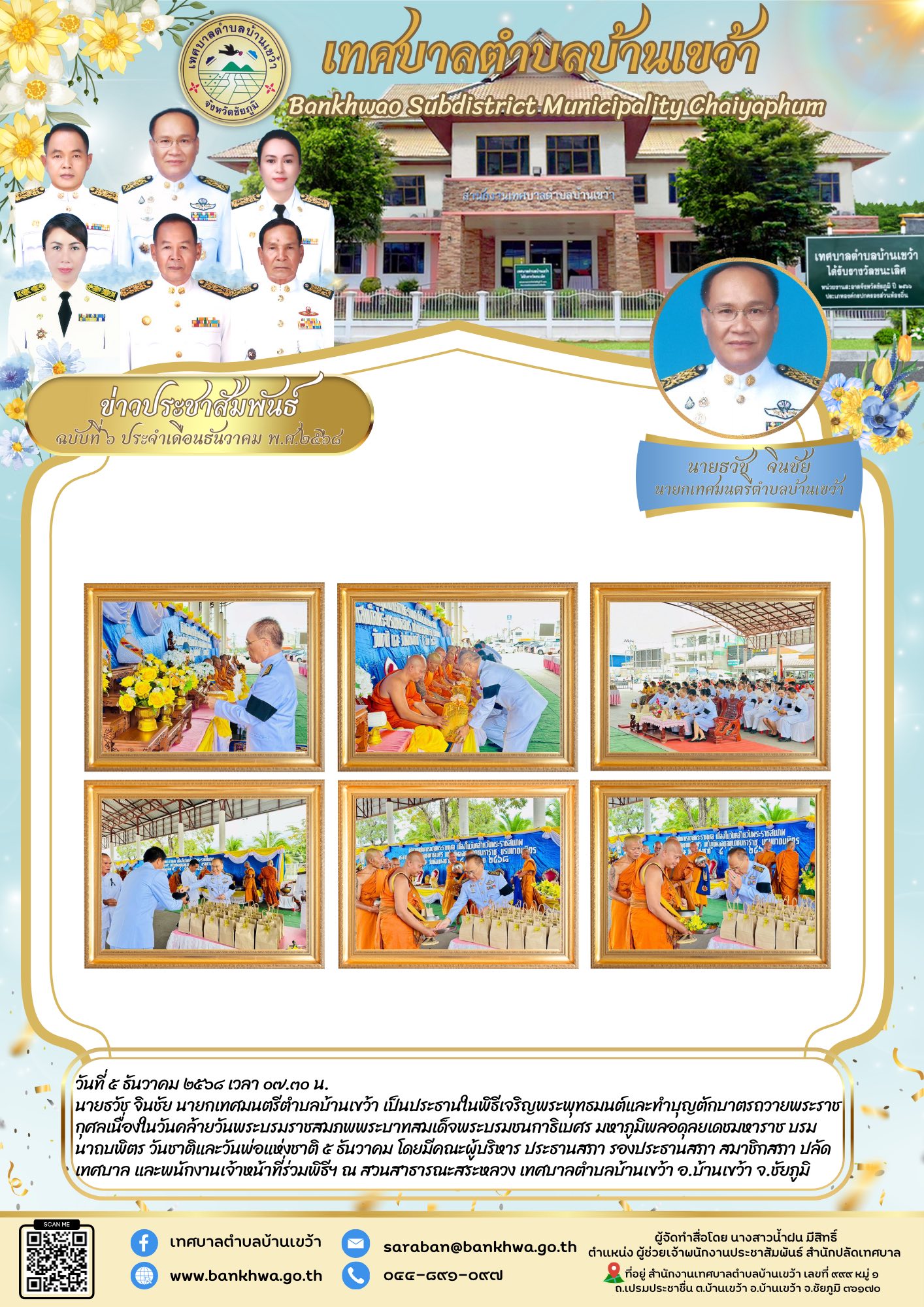 พิธีเจริญพระพุทธมนต์และทำบุญตักบาตรถวายพระราชกุศลเนื่องในวันคล้ายวันพระบรมราชสมภพพระบาทสมเด็จพระบรมช...