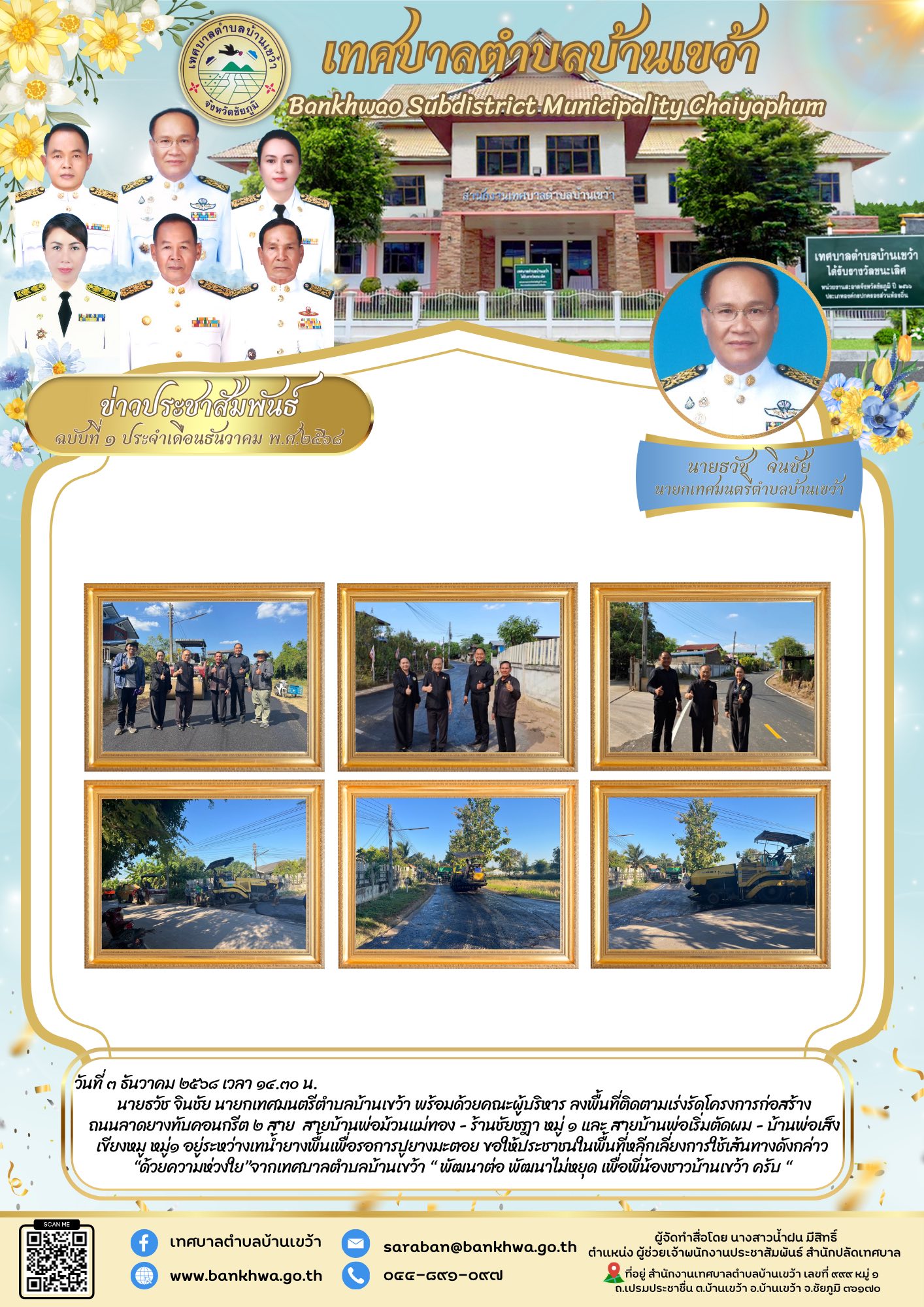 คณะผู้บริหาร ลงพื้นที่ติดตามเร่งรัดโครงการก่อสร้าง ถนนลาดยางทับคอนกรีต ๒ สาย...