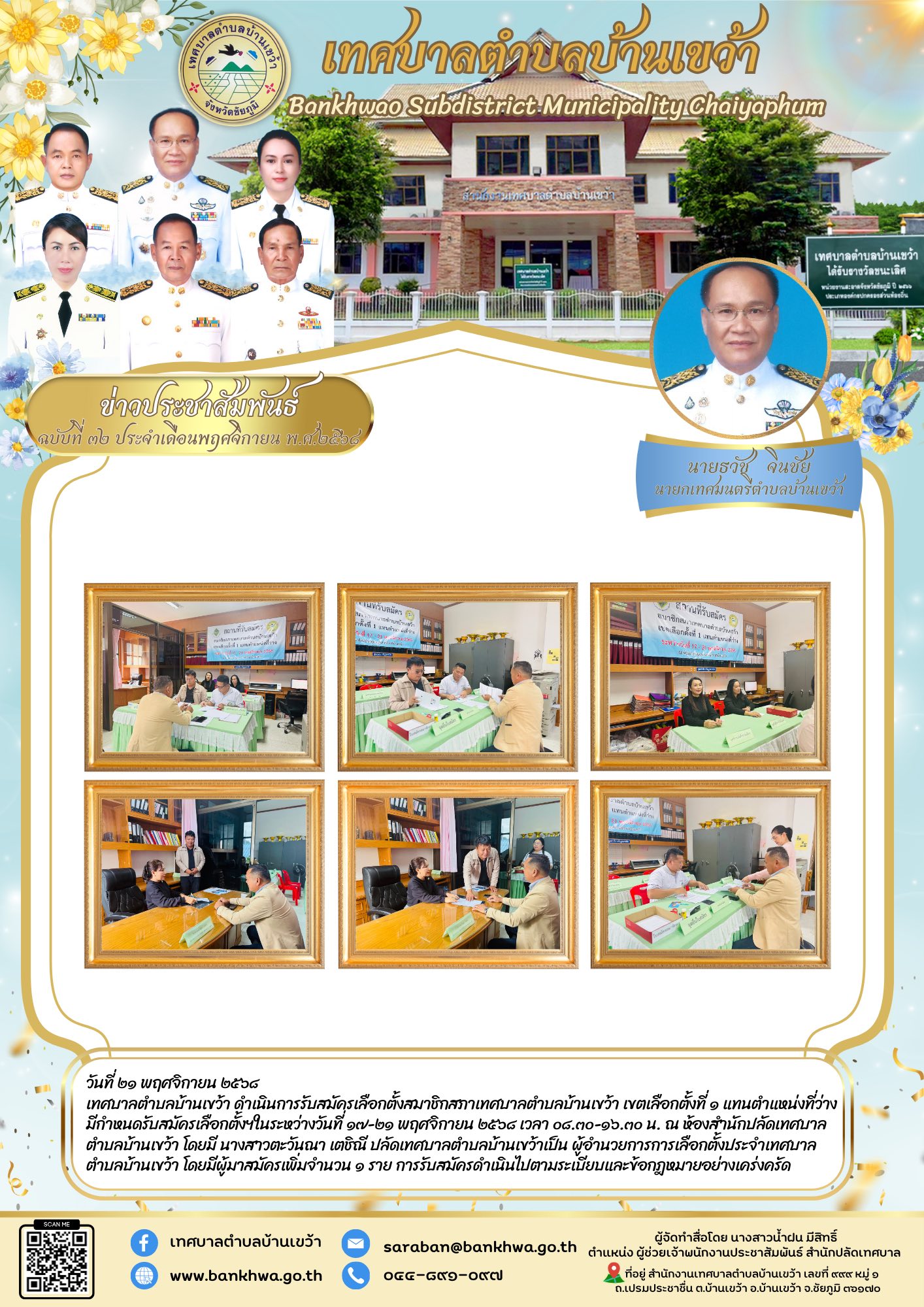 เทศบาลตำบลบ้านเขว้า ดำเนินการรับสมัครเลือกตั้งสมาชิกสภาเทศบาลตําบลบ้านเขว้า เขตเลือกตั้งที่ ๑ แทนตำแหน�...