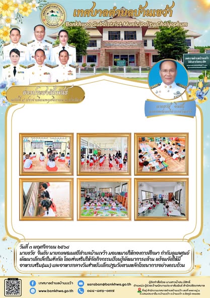 กองการศึกษากำกับดูแลศูนย์พัฒนาเด็กเล็กในสังกัดเทศบาลตำบลบ้านเขว้า...
