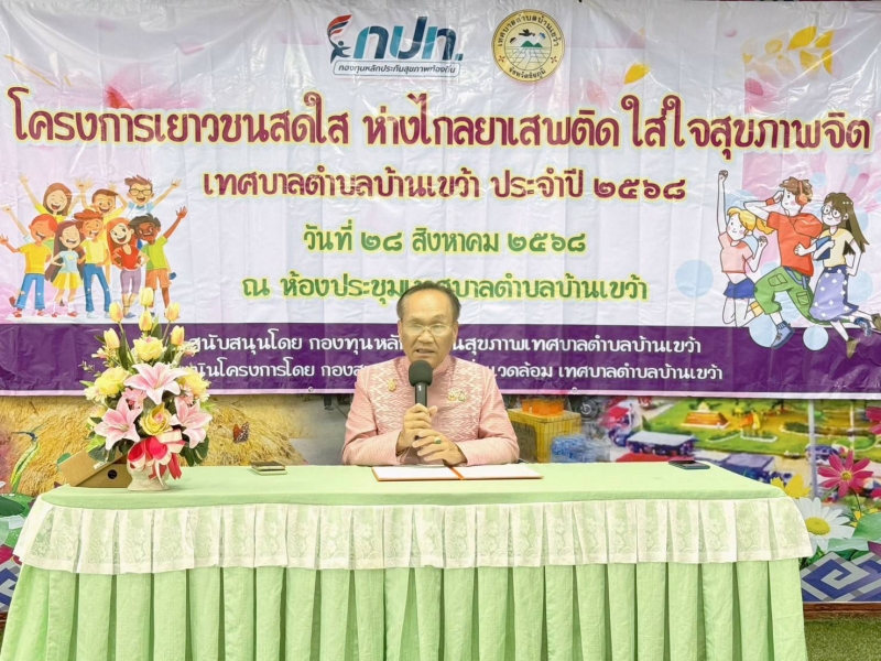 นายธวัช จินชัย นายกเทศมนตรีตำบลบ้านเขว้า เป็นประธานเปิดโครงการเยาวชนสดใส ห่างไกลยาเสพติด ใส่ใจสุขภาพจิต เทศบาลตำบลบ้านเขว้า ประจำปี ๒๕๖๘ โดยมีคณะผู้บริหาร สมาชิกสภาฯ ปลัดเทศบาลฯ ผอ. กองสาธารณสุขและสิ่งแวดล้อม พร้อมเจ้าหน้าที่เกี่ยวข้องร่วมเป็นเกียรติในพิธีเปิดโครงการฯ โดยได้รับความอนุเคราะห์วิทยากรจากกลุ่มวิชาการพยาบาลสุขภาพจิตและจิตเวช คณะพยาบาลศาสตร์ มหาวิทยาลัยราชภัฏชัยภูมิ จัดอบรม