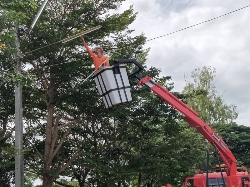 นายธวัช จินชัย นายกเทศมนตรีตำบลบ้านเขว้า มอบหมายให้กองช่าง ซ่อมไฟฟ้าสาธารณะ หมู่ ๑ และ หน้า