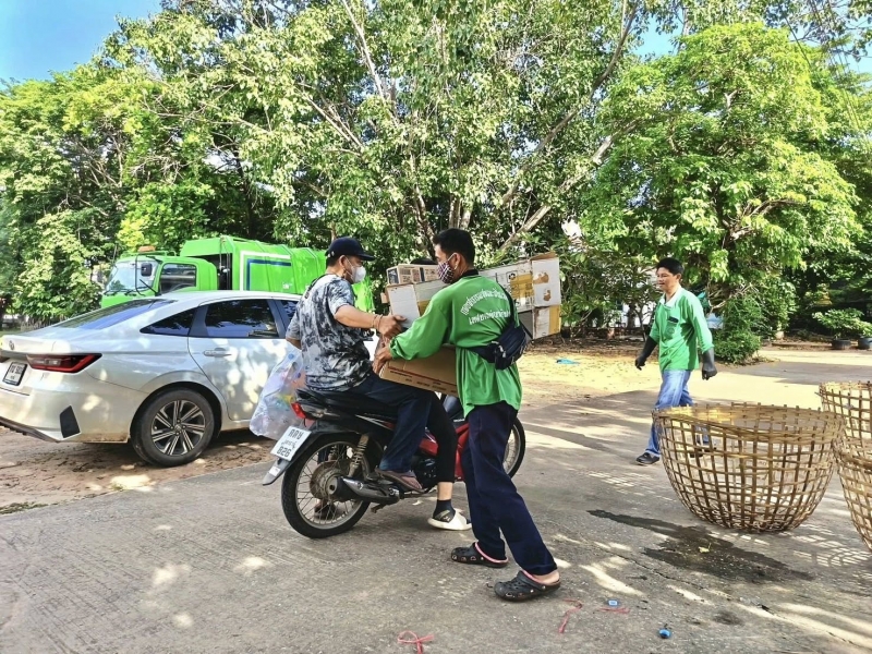 นายธวัช จินชัย นายกเทศบาลตำบลบ้านเขว้า มอบหมายให้กองสาธารณสุขและสิ่งแวดล้อมลงพื้นที่สนับสนุนกิจกรรมของกลุ่ม ขยะรีไซเคิลคุ้มครองชีวิต โดยออกรับขยะ จากสมาชิกกลุ่มขยะรีไซเคิลฯทั้ง ๖ หมู่บ้าน ซึ่งคัดแยกจากต้นทาง รวบรวม และส่งจำหน่าย เพื่อนำเงินเข้าเป็นรายได้และสวัสดิการของกลุ่มฯ ซึ่งปัจจุบันได้รับความร่วมมือและการตอบรับจากชุมชนต่างๆ เป็นอย่างดี