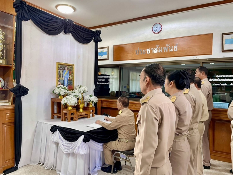 นายธวัช จินชัย นายกเทศมนตรีตำบลบ้านเขว้า พร้อมด้วยคณะผู้บริหาร ปลัดเทศบาล หัวหน้าสำนักฯ ผู้อำนวยการกองทุกกอง และข้าราชการเจ้าหน้าที่ ร่วมลงนามถวายความอาลัยแด่สมเด็จพระนางเจ้าสิริกิติ์ พระบรมราชินีนาถ พระบรมราชชนนีพันปีหลวง ณ สำนักงานเทศบาลตำบลบ้านเขว้า อ.บ้านเขว้า จ.ชัยภูมิ