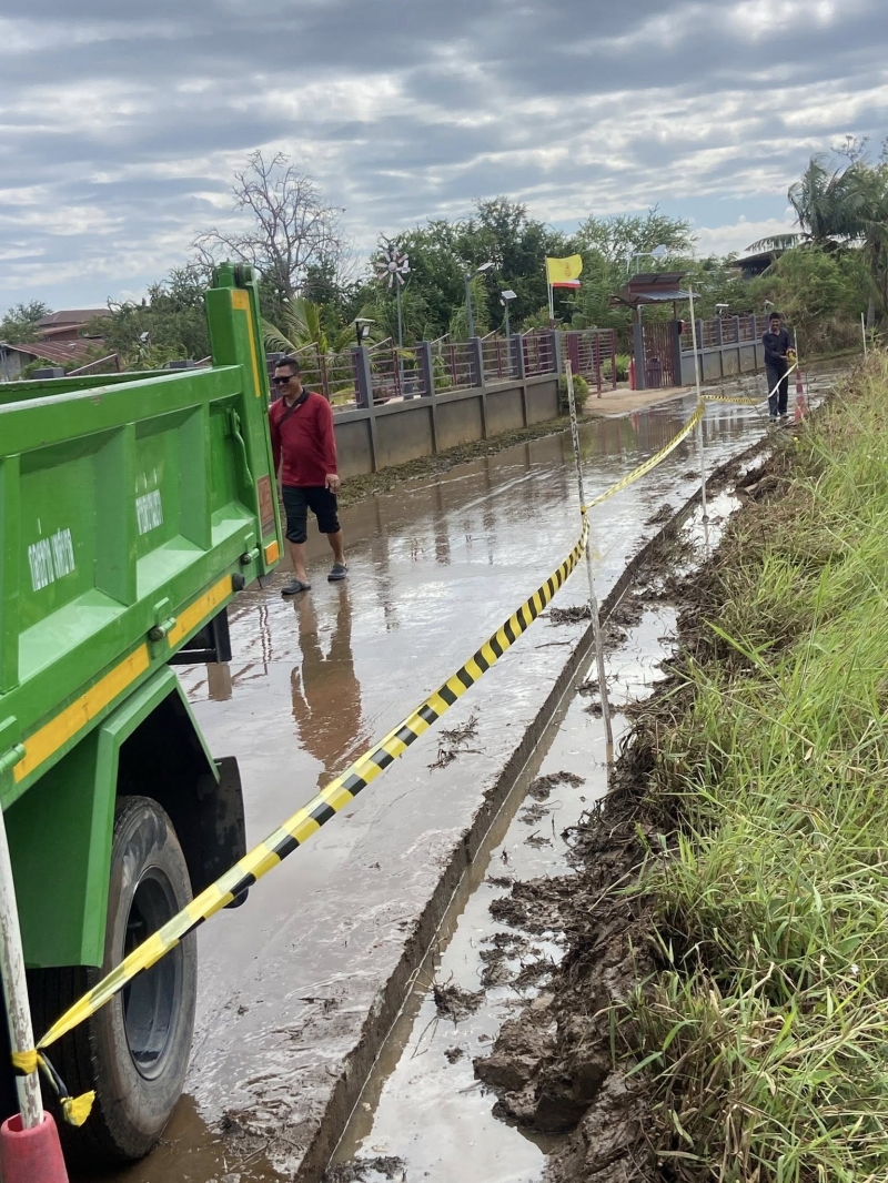 นายธวัช จินชัย นายกเทศมนตรีตำบลบ้านเขว้า มอบหมายให้ งานป้องกันฯ วางกระสอบทรายกั้นทางน้ำ ถนนสายส้มโรง ๕ หมู่๑ บริเวณหน้าบ้านหมอนิคม โถชัย เพื่อบรรเทาปัญหาน้ำท่วมขังในระหว่างรองบประมาณก่อสร้างรางระบายน้ำ และลดการเกิดอุบัติเหตุบริเวณดังกล่าว ขอให้พี่น้องประชาชนสัญจร ไป-มา ด้วยความระมัดระวัง ด้วยความห่วงใยจากเทศบาลตำบลบ้านเขว้าครับ