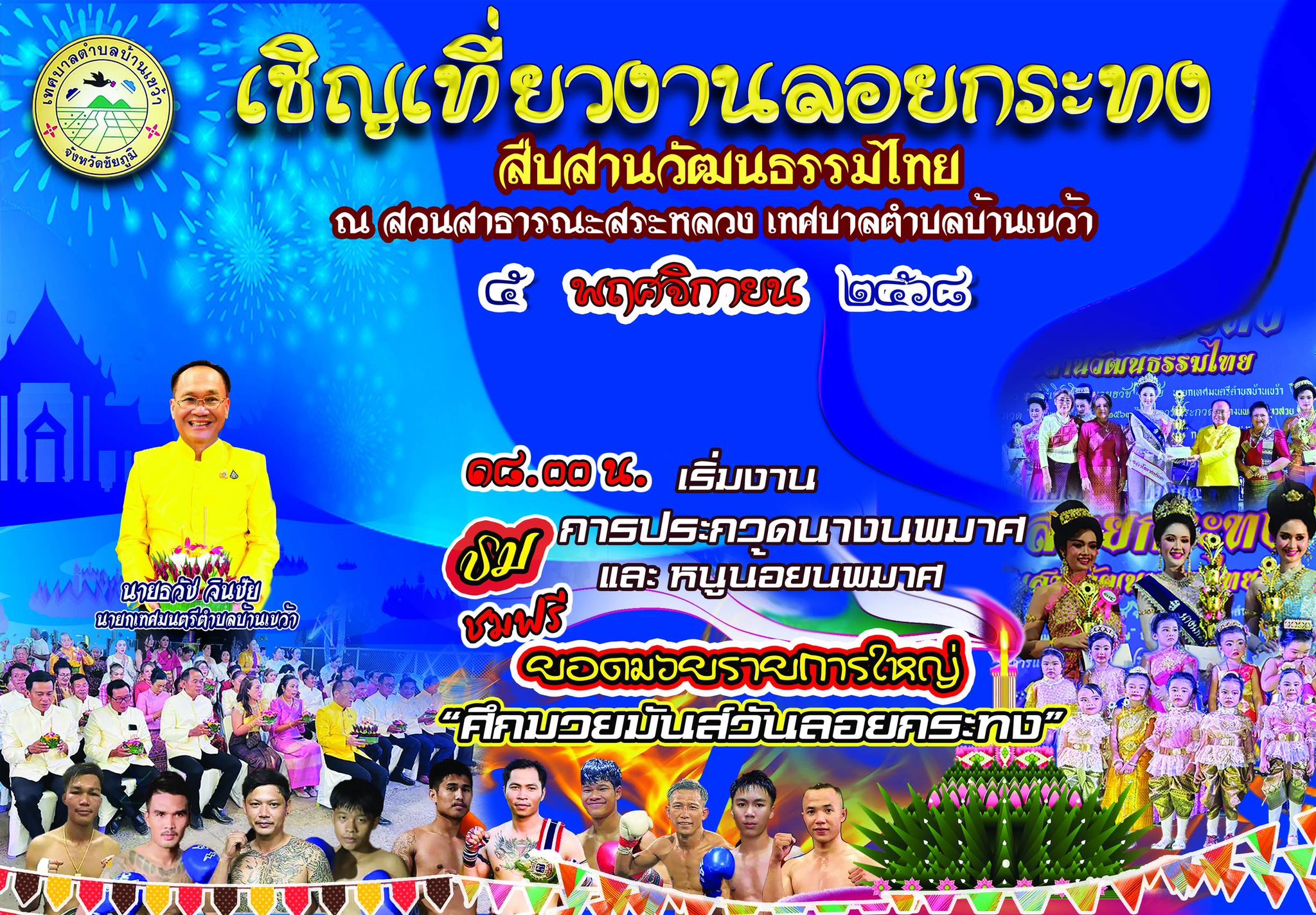 เทศบาลตำบลบ้านเขว้า เชิญเที่ยวงานลอยกระทง ประจำปี 2568