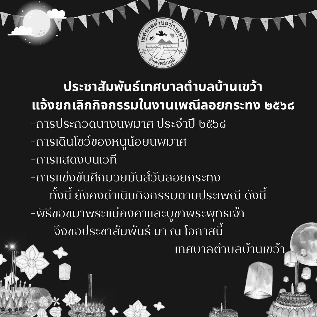 แจ้งยกเลิกกิจกรรมในงานประเพณีลอยกระทง ๒๕๖๘