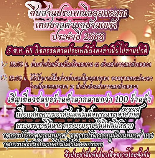 เทศบาลตำบลบ้านเขว้า ขอเชิญร่วมสืบสานประเพณีลอยกระทงประจำปี 2568