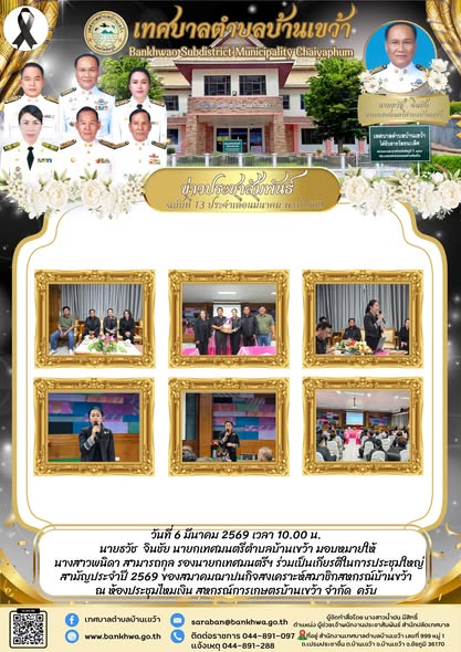 นายธวัช จินชัย นายกเทศมนตรีตำบลบ้านเขว้า มอบหมายให้ นางสาวพนิดา สามารถกุล รองนายกเทศมนตรีฯ ร่วมเป็นเกียรติในการประชุมใหญ่สามัญประจำปี 2569 ของสมาคมฌาปนกิจสงเคราะห์สมาชิกสหกรณ์บ้านขว้า ณ ห้องประชุมไหมเงิน สหกรณ์การเกษตรบ้านเขว้า จำกัด ครับ