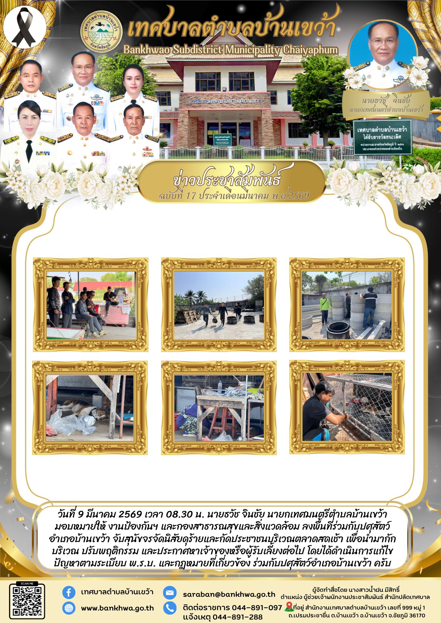 นายธวัช จินชัย นายกเทศมนตรีตำบลบ้านเขว้า มอบหมายให้ งานป้องกันฯ และกองสาธารณสุขและสิ่งแวดล้อม ลงพื้นที่ร่วมกับปศุสัตว์อำเภอบ้านเขว้า จับสุนัขจรจัดนิสัยดุร้ายและกัดประชาชนบริเวณตลาดสดเช้า เพื่อนำมากักบริเวณ ปรับพฤติกรรม และประกาศหาเจ้าของหรือผู้รับเลี้ยงต่อไป โดยได้ดำเนินการแก้ไขปัญหาตามระเบียบ พ.ร.บ. และกฎหมายที่เกี่ยวข้อง ร่วมกับปศุสัตว์อำเภอบ้านเขว้า ครับ