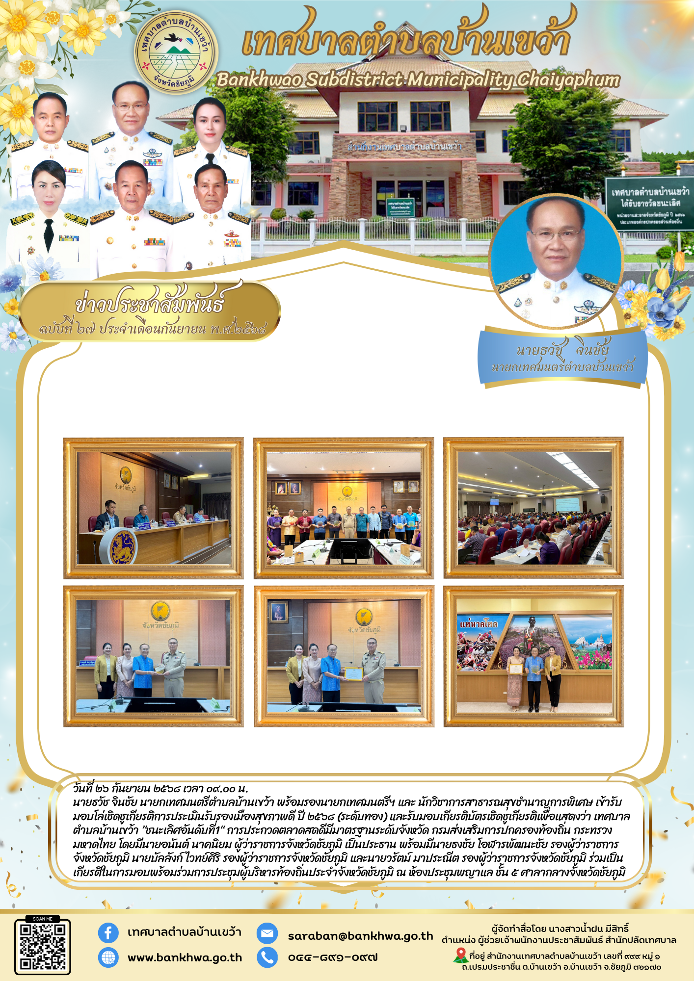 เข้ารับมอบโล่เชิดชูเกียรติการประเมินรับรองเมืองสุขภาพดี ปี ๒๕๖๘ (ระดับทอง) และรับมอบเกียรติบัตรเชิดชูเก�